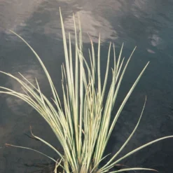 Marginal Pond Plants, such as the Acorus Gramineus Variegatus – Variegated Slender Sweet Flag, can be placed in the shallow areas of a pond. This is usually around the edges, or margin, of the pond. Certain types of marginal pond plants can be planted out of the pond water in damp ground, ideal for a bog garden or water garden display.