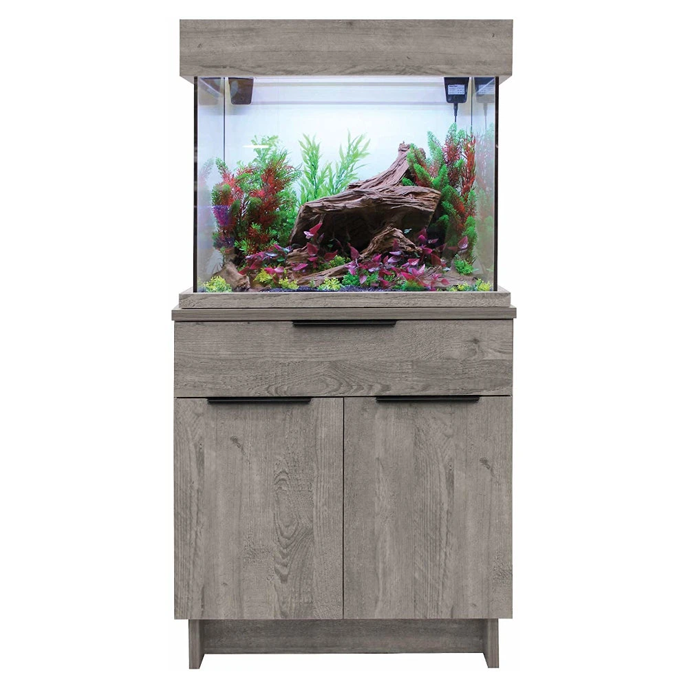 - A quality aquarium and a fantastic piece of furniture – rustic wood effect finish