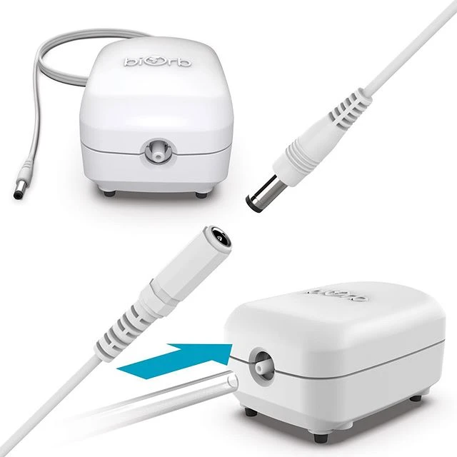 The air pump on your biOrb works very hard, 24 hours a day and like all mechanical parts will eventually wear out. You may notice that the pump becomes noisier or the bubbles less vigorous. At which point it may be time to replace your air pump. Replacing the air pump is simply a case of unplugging the old one and plugging in the new. Simple instructions are supplied. If your air pump stops working replace it as soon as you can to minimise interruption to the filtration. It is advisable to keep a spare air pump so that if it fails you can replace it straight away.