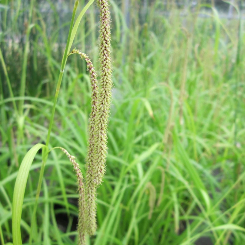 Carex Pendula, also known as the Pendulous Sedge, has dark green leathery leaves which grow upward then droop to form a weeping mound. The pendulous seed heads can often be seen by streams and brooks. Little maintenance is required. Trim just above the water surface after foliage has died back in Autumn to tidy.