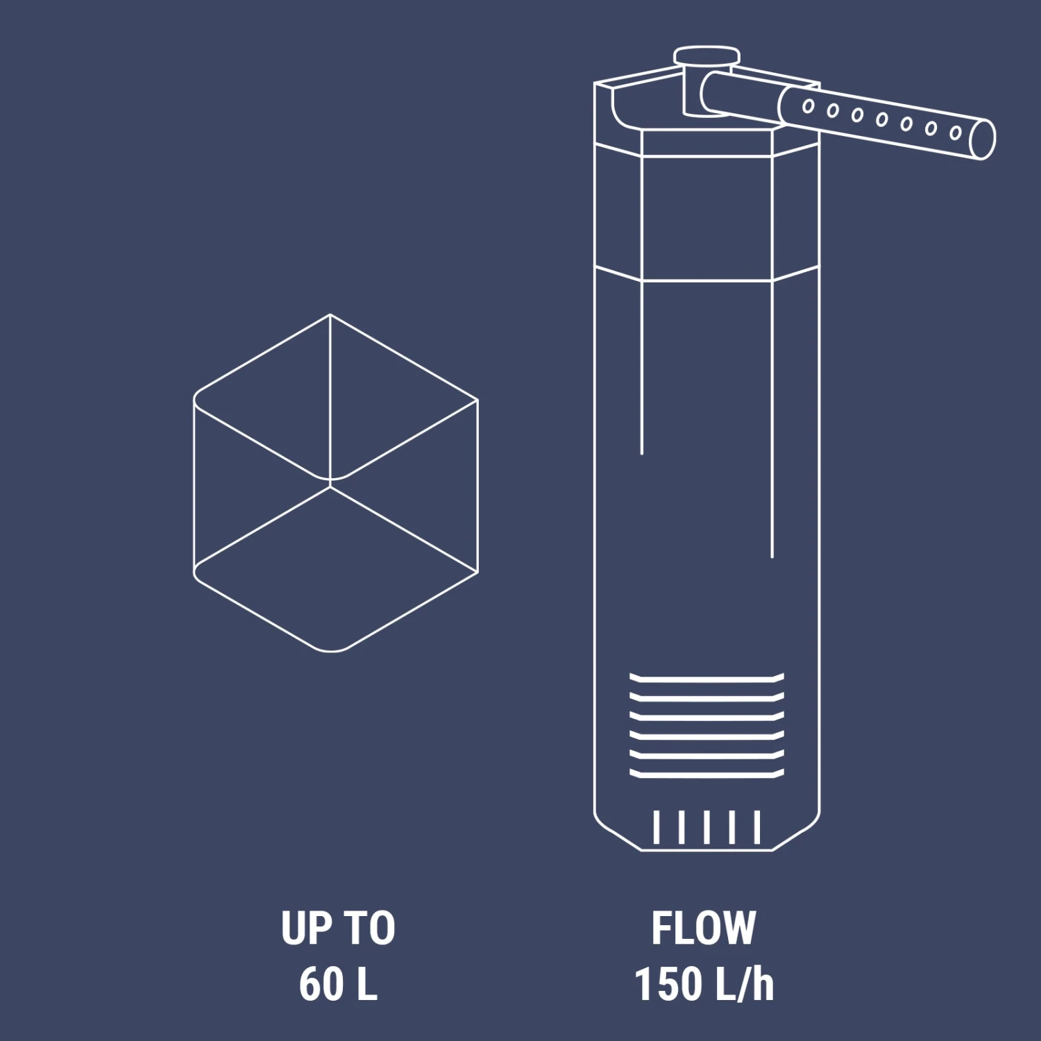 The nano corner filter XL is a high-performance device with a pump delivery rate of 150 l/h. The pump runs so smoothly and quietly that it is practically inaudible. Its modest power consumption of just 2 W additionally helps to conserve natural resources.