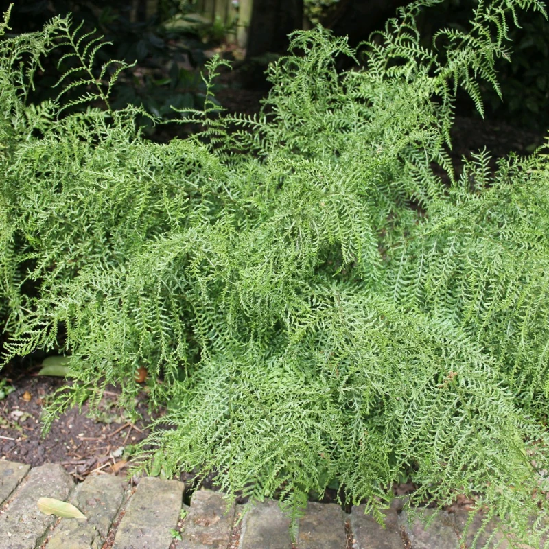 Dryopteris Filix Mas Linearis, or Slender Crested Male Fern, will thrive in damp, shady woodland environments and is often grown for decoration around ponds.