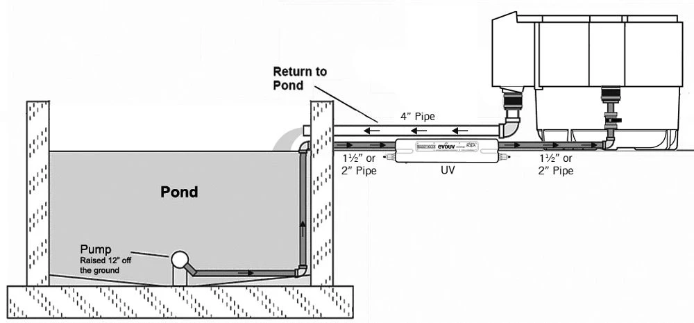 Water then passes through the exit grill into the outlet, returning back to the pond.