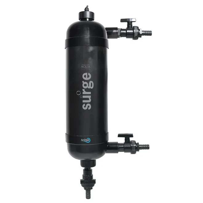 The Evolution Aqua Surge Filter with 18 watt UV can be used on quarantine systems or as a standalone filter on smaller ponds up to 5,000 Litres / 1,100 Gallons / 1,320 US Gallons.