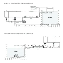 Output and energy consumption can be controlled at the push of a summary and the six pole, three phase motor is quiet and reliable. Available in three sizes, the Varipump is powerful enough to run the largest of ponds and filters, and in the most demanding of situations. The Varipump is suitable for use in and out of a pond and hosetail fittings are included.