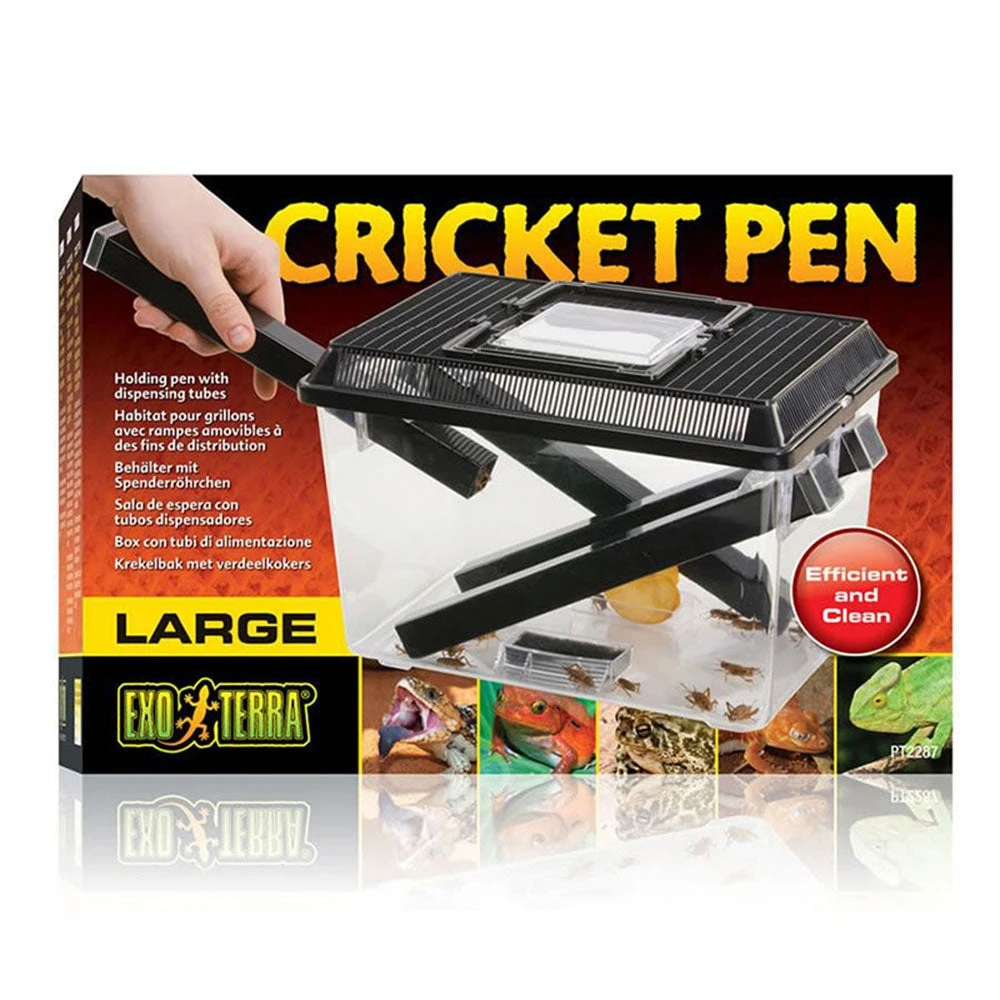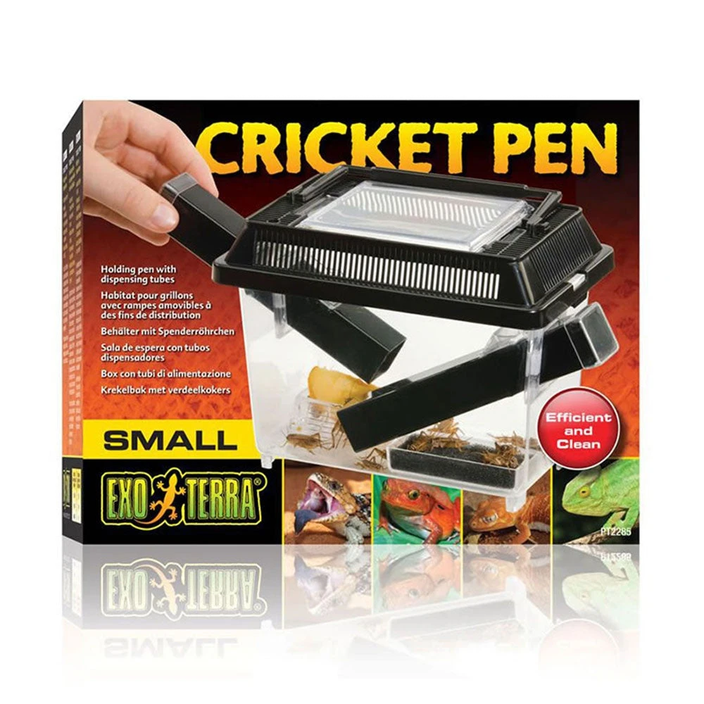The Exo Terra Cricket Pen is ideal for housing, keeping and dispensing live crickets. Crickets prefer dark spaces, and will readily crawl into the tubes which provide hiding places for them, making it easy to use the tubes as dispensing tools.
