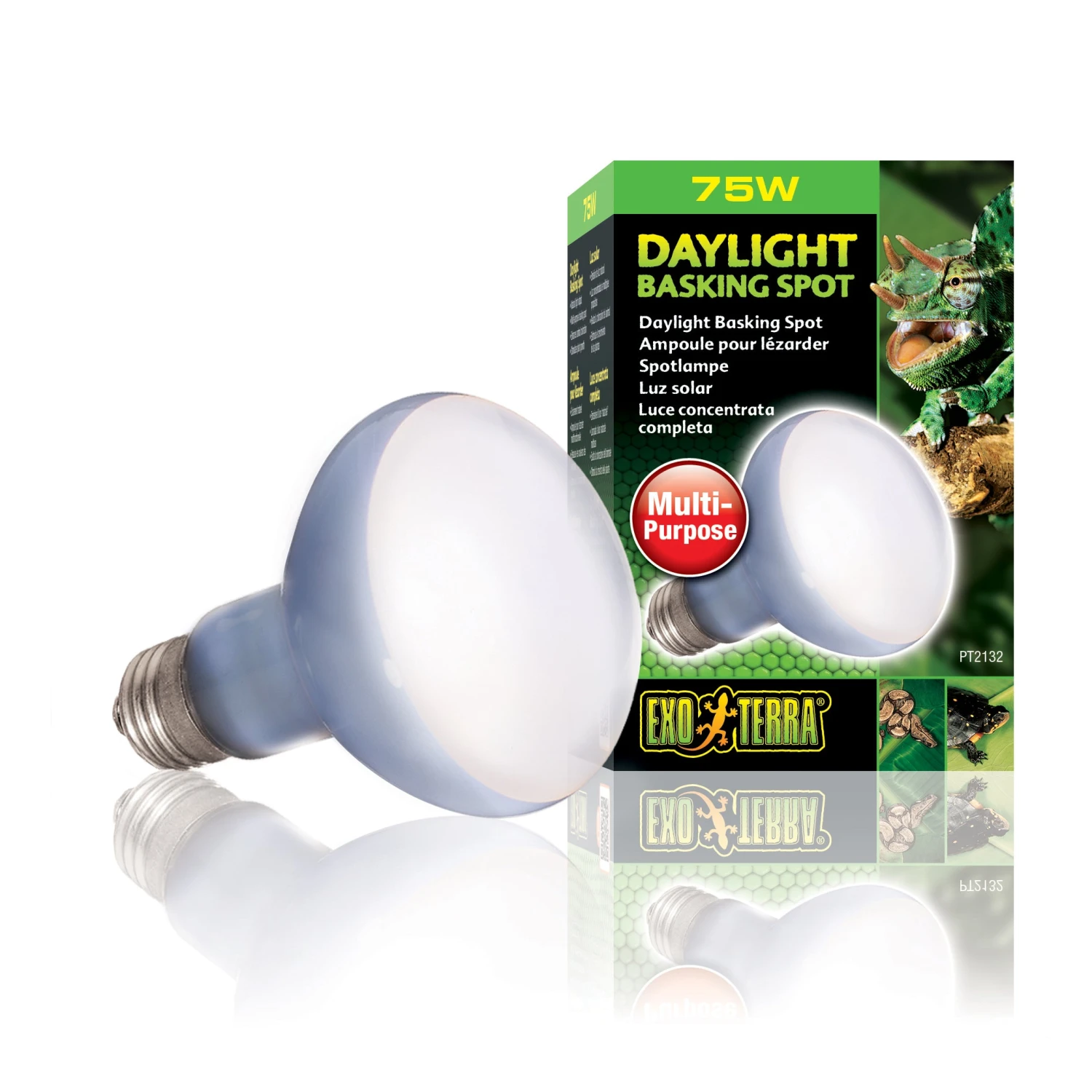 The Daylight Basking Spot is a radiant heat lamp with a Neodymium sleeve. The light spectrum is ideal to create a daytime light cycle, stimulate plant’s photosynthesis and the infrared light contributes to the reptiles’ physiological well-being. The spot allows you to direct the heat to create a basking site and temperature gradient in the terrarium.
