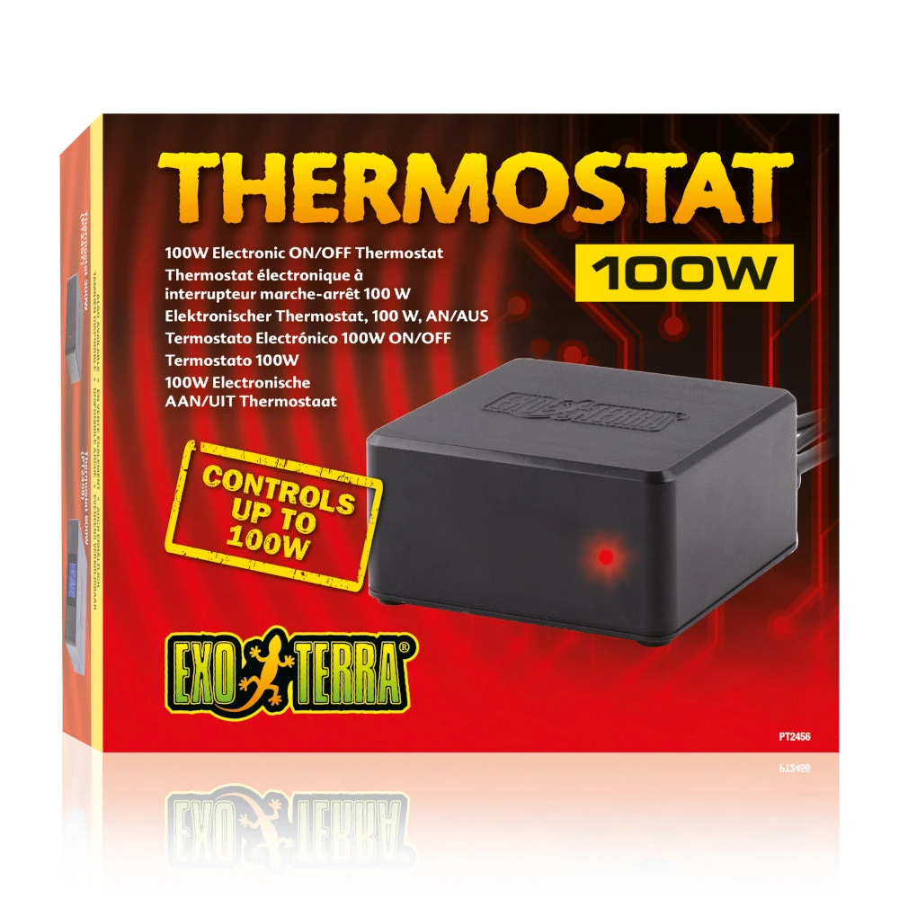 Reptiles are ectotherm, and use heat from an external source to thermoregulate their optimal body temperature. Most reptiles use direct radiant heat from the sun in combination with conductive heat from sun-heated surfaces such as branches, rocks or other heat accumulating structures. Providing such an appropriate, species related, temperature gradient in the terrarium is an important factor in successful reptile keeping. With the Exo Terra Electronic ON/OFF Thermostat you can create a well-controlled heating system that allows you to maintain the required temperature conditions similar to those found in a desert or tropical environment.
