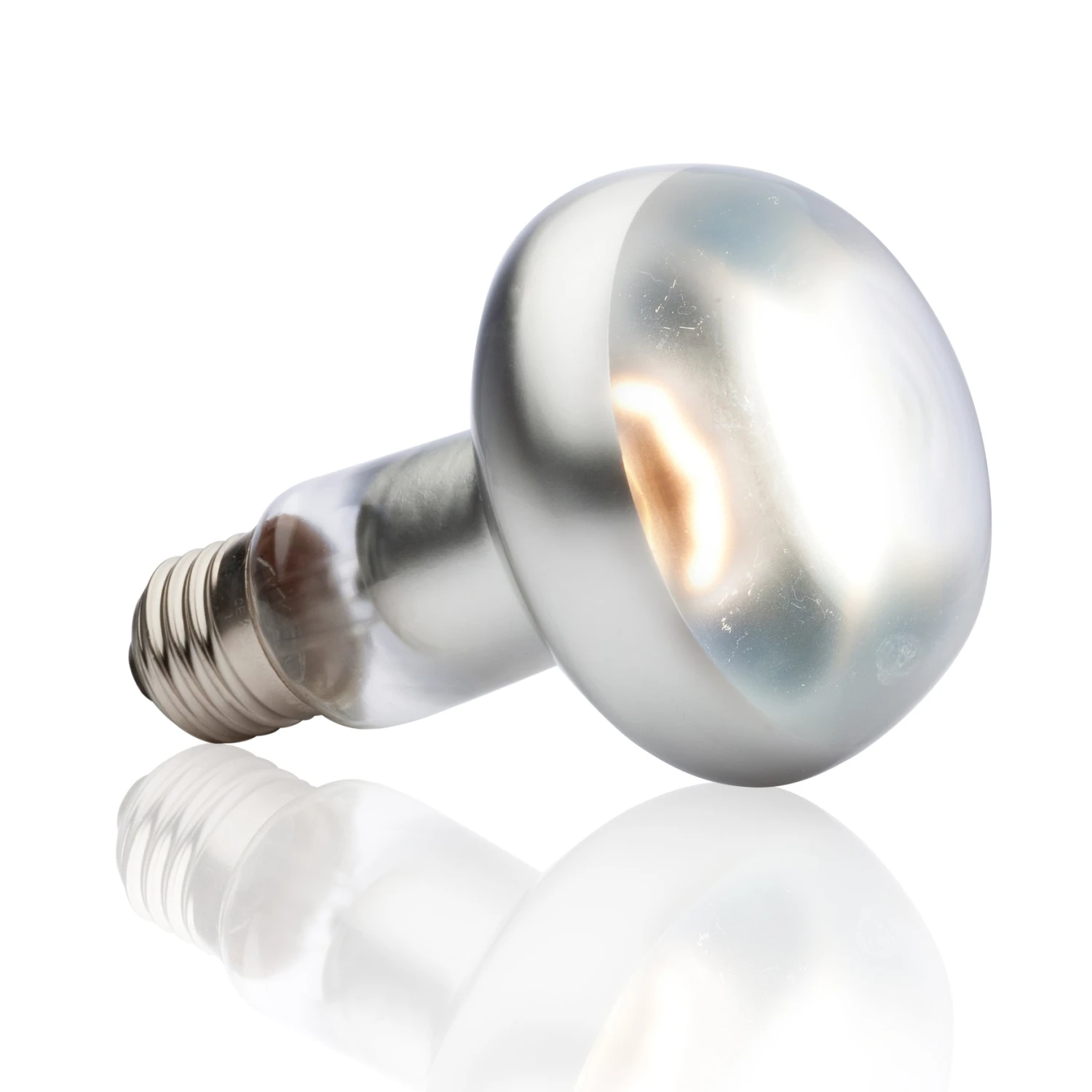 A lamp specifically designed as a basking spot lamp. The tight beam can be directed precisely on an area to create a basking site. The heat and light in the beam is increased by 35%, allowing greater distances between the bulb and the basking site. The UVA (ultraviolet A) light contributes to reptiles’ physiological well-being.