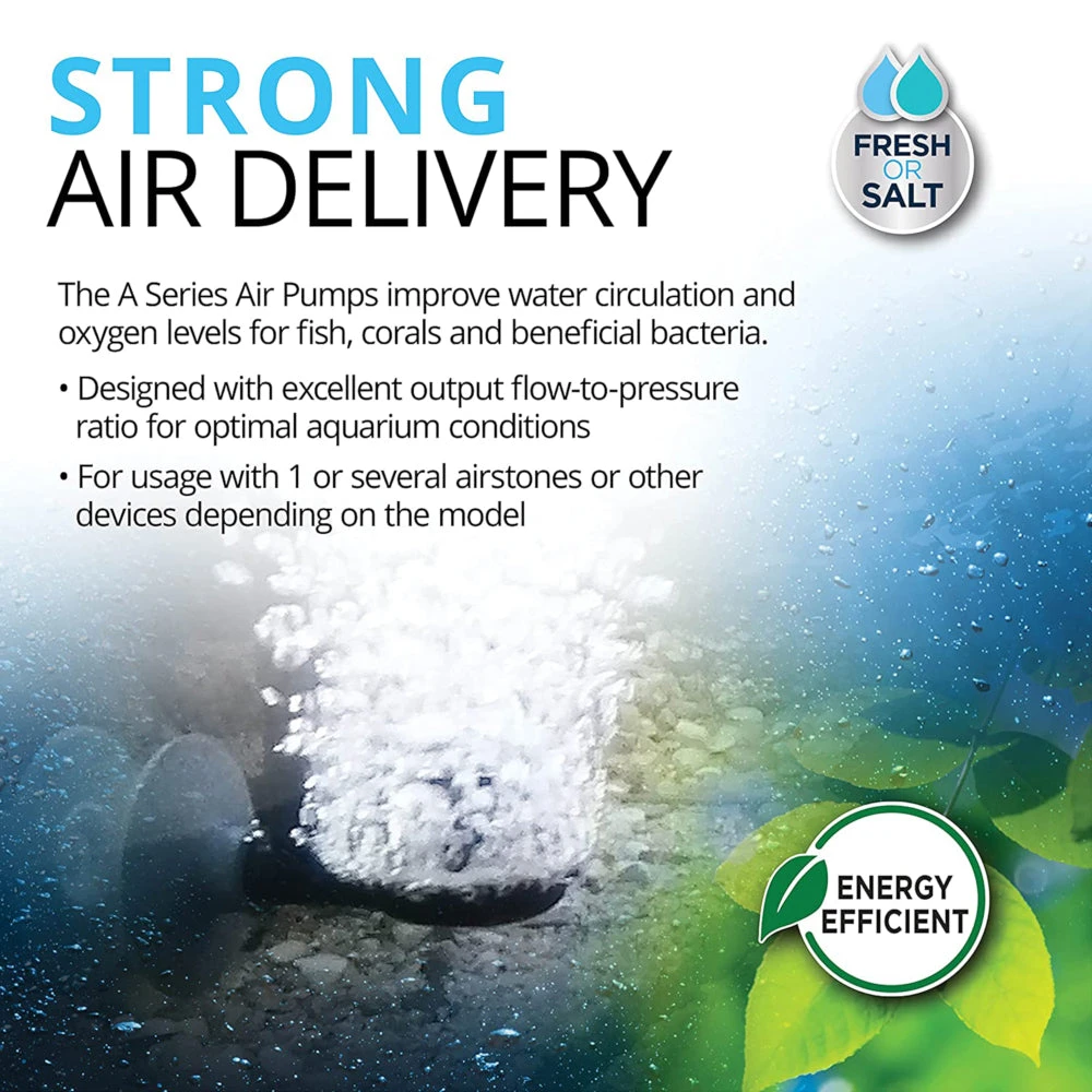 The Fluval A Series Air Pumps have been created to significantly improve water circulation and essential oxygen levels for fish, plants, corals and beneficial bacteria.