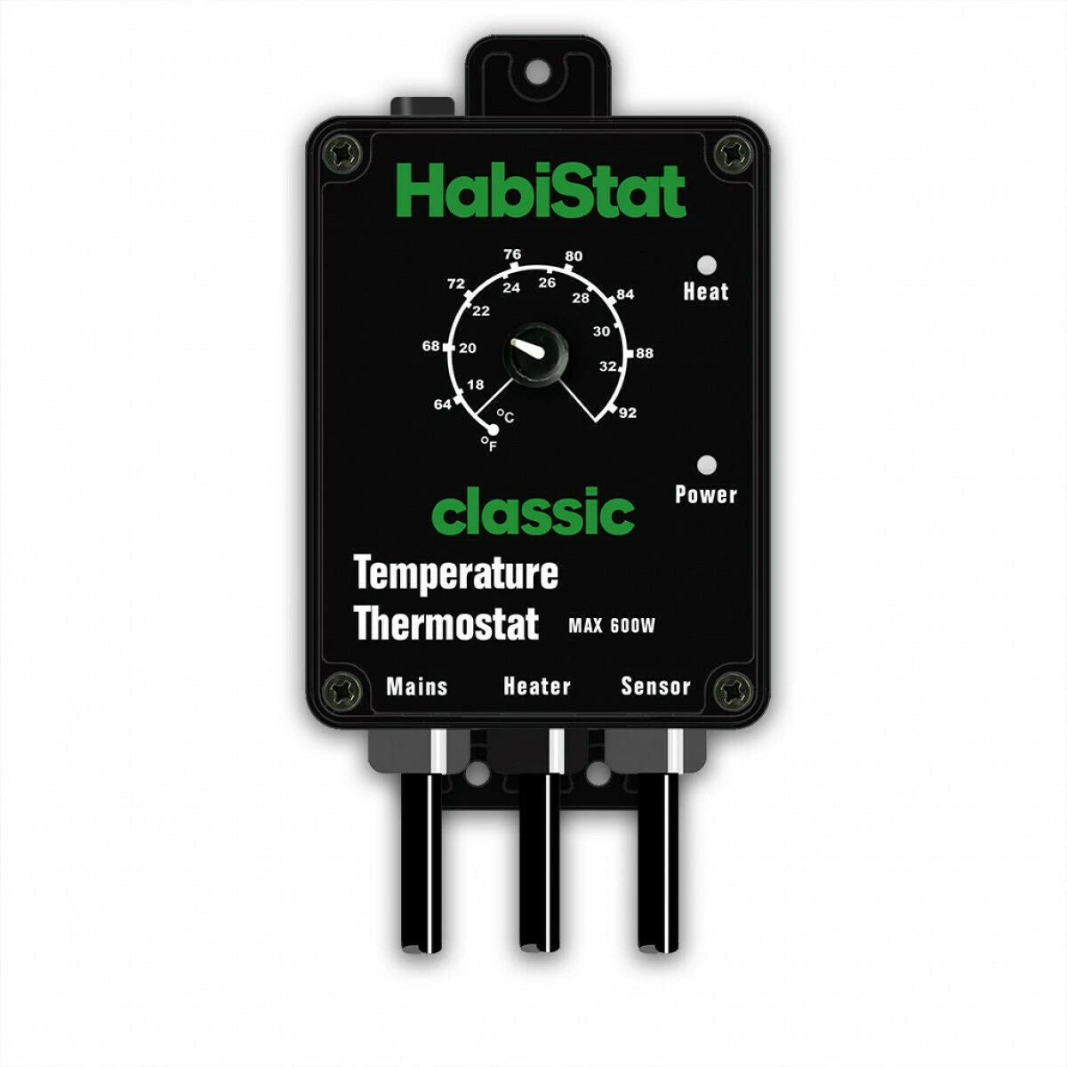 The HabiStat Temperature Thermostat is an on/ off thermostat that is ideal for controlling the temperature of heat mats and other heaters up to a maximum load of 600 watts.