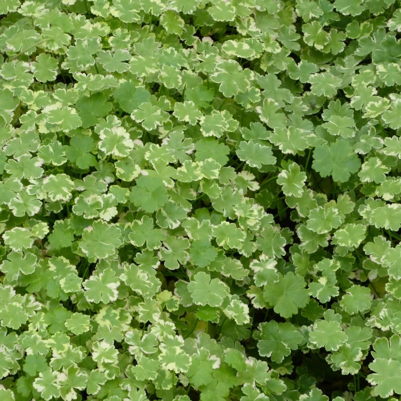 Having oxygenating plants like Hydrocotyle Sibthorpioides Variegata, or Crystal Confetti, in your pond is a very good thing because fish and bacteria use up oxygen continually through respiration, and need oxygen to survive. Many oxygenating pond plants are also suitable and beneficial for cold-water aquarium setups. Hydrocotyle Sibthorpioides Variegata – Crystal Confetti is an attractive perennial that forms a carpet of miniature round leaves edged with cream. Little maintenance is required. Trim just above the water surface after foliage has died back in Autumn to tidy.