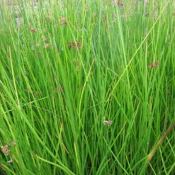 Juncus Effusus, also known as the Soft Rush, has very erect, dark green stems and brown seed heads. Clumps will spread by creeping rhizomes. Can self seed. It was used to be make into mats and was probably the rush strewn over the floor in many of Shakespeare’s plays. Evergreen. Trim in early spring to encourage new growth.
