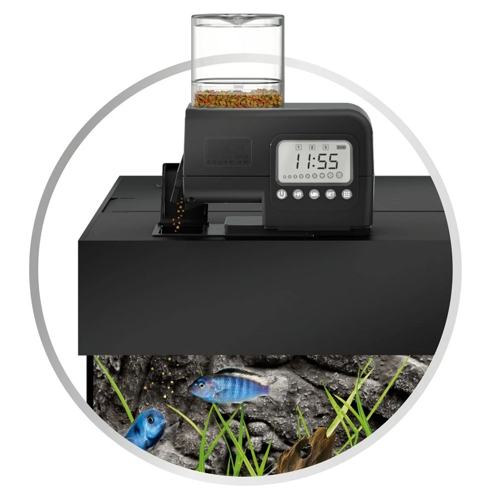 The Juwel SmartFeed Automatic Feeder is the premium choice automatic feeder with an extended range of functions for Juwel aquariums. It is suitable for both granulate and flake feed thanks to exchangeable conveyor screws. Every Juwel fish tank is already equipped for the quick and easy installation of this automatic feeder, making it ready for use almost immediately. Using the mounting support, it can be fitted simply to any Juwel aquarium.