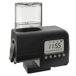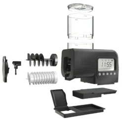 The SmartFeed premium automatic feeder may be freely programmed for up to three feeds per day. The desired feed quantity may be programmed to be dispensed in any of eight levels. A large display is used for convenient programming of the feeder. The feed volume of 110ml may be extended by a further 110ml using the enclosed feed chamber attachment. Ideal for even longer service lives.