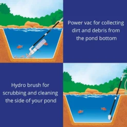 The Pond Vac kit includes a Power Vac attachment which collects dirt and debris from the base of the pond and a Hydro Brush attachment for scrubbing and cleaning. The Laguna Pond Vac also comes with an integral control valve allowing you to adjust the amount of water flowing through the vacuum. The kit also includes a filter bag and an extension pole.