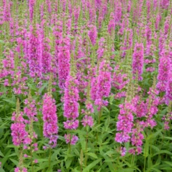 Lythrum Salicaria Robert, Loosestrife, is a stunning plant for a medium to large pond or lake. The tall pink blooms can be seen from some distance, it is free flowering over a long period in summer. Little maintenance is required. Trim to tidy but leave foliage to die back naturally to encourage winter bud formation.