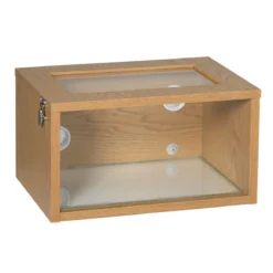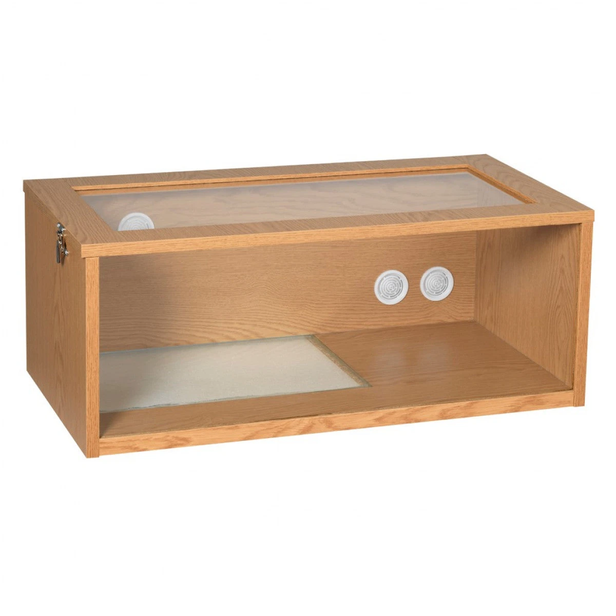 The Monkfield Tall Terrainium is ideal for housing hatchling and fully grown Snakes, such as Corn Snakes, terrestrial Geckos and many more species. Quick and easy to set up, the Monkfield Tall Terrainium has a glass front and top panel to allow for good natural lighting and enhanced viewing. A double layered glass base makes it easy to install a heat mat and an insulating layer of polystyrene below the glass base ensures the heat is projected into the Terrainium. Offset ventilation holes on both sides ensure the air is circulated correctly and there is no need for any drilling as the Terrainium is fitted with a rubber grommet in the rear to insert the thermostat probe. Opening from the top for easy access and cleaning, the Tall Terrainium has secure clip lock catches on the lid to ensure there are no escapees!