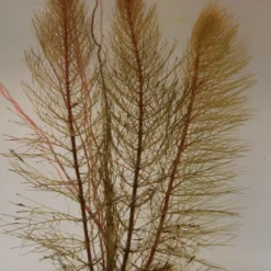 Myriophyllum Brasiliensis Red Stem, Red Stemmed Parrots Feather, has bright green feathery foliage with red stems above the water. If planted deeper, the leaves convert to an underwater leaf form which is a darker reddy colour and it is these which oxygenate the water. Little maintenance is required. Remove excess growth if necessary.