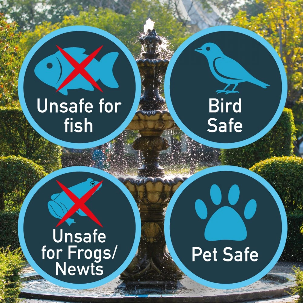 - Wide Compatibility: Safe for plastic, stone, concrete, metal, resin, and fibreglass water features