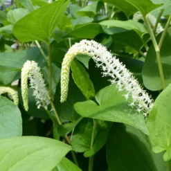Marginal Pond Plants, such as the Saururus Cernuus – Lizards Tail can be placed in the shallow areas of a pond. This is usually around the edges, or margin, of the pond. Certain types of marginal pond plants can be planted out of the pond water in damp ground, ideal for a bog garden or water garden display.