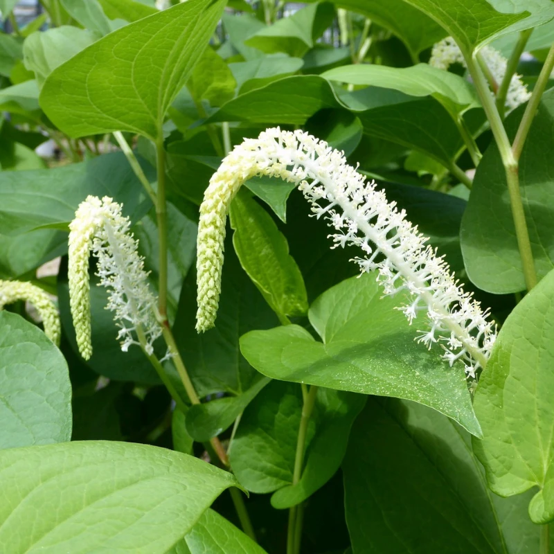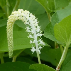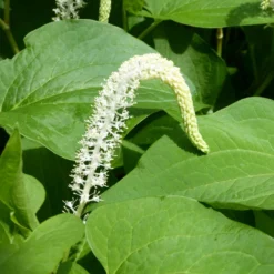 Saururus Cernuus, commonly known as Lizards Tail, has green lance-shaped leaves with slender nodding solitary spikes of tiny white fragrant flowers. The common name Lizard’s tail depicts the shape of its drooping flower. Little maintenance is required. Trim just above the water surface after foliage has died back in Autumn to tidy.