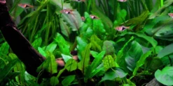 Cryptocoryne wendtii ‘Green’ is suitable for small aquariums with a height from 10-15 cm and a roset from 8-15 cm wide. When grown in an open space the leaves will virtually lie on the bottom. Like most other Sri Lanka Cryptocorynes, it also grows well in hard water.