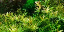 High light levels, good fertilization and added CO2 will induce almost exclusively creeping growth and a warm, rich orange coloration. This makes it possible to create a dense, orange mid-ground cushion or even an unusual, orange foreground carpet.