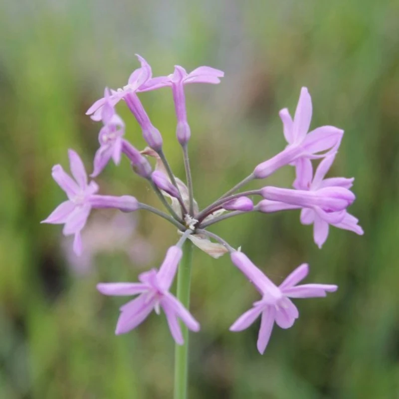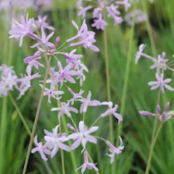 Tulbaghia Violacea, also known as Society Garlic, has fragrant, pale purple flowers held in large terminal umbels, and is free flowering late in the season. Little maintenance is required.